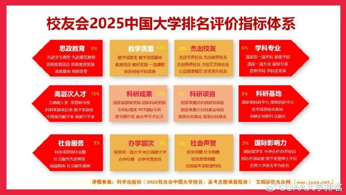 重磅:校友会2025中国大学排名详细评价指标体系