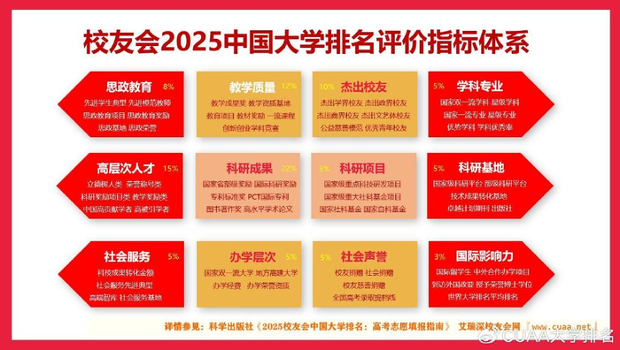 校友会中国大学排名是首发于2003年,至今已有23年的历史,已成为具有广泛社会影响力、公信力、参考价值与创新力的中国大学排名领先品牌,评价高校涵盖了中国海峡两岸暨香港澳门地区的2000多所本科院校和高职(专科)院校。