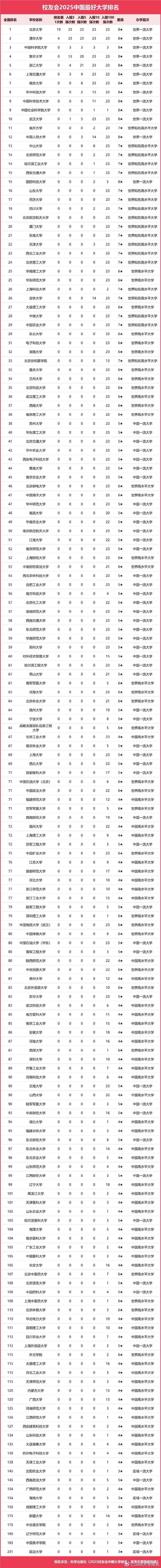 北京大学、清华大学雄居2025中国最好大学排名冠亚军,中国科学院大学等21所高校跻身全国十强