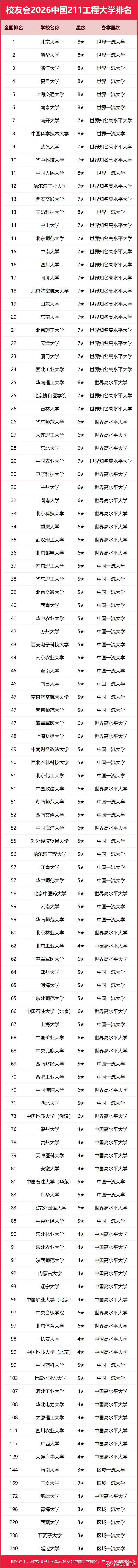 1月12日,全国第三方大学评价机构艾瑞深校友会网(Cuaa.net)撰写完成、科学出版社即将公开出版的《2026校友会中国大学排名:高考志愿填报指南》发布校友会2026中国211工程大学排名。