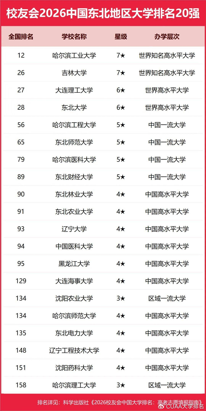 哈尔滨工业大学问鼎校友会2026中国东北地区大学排名首位