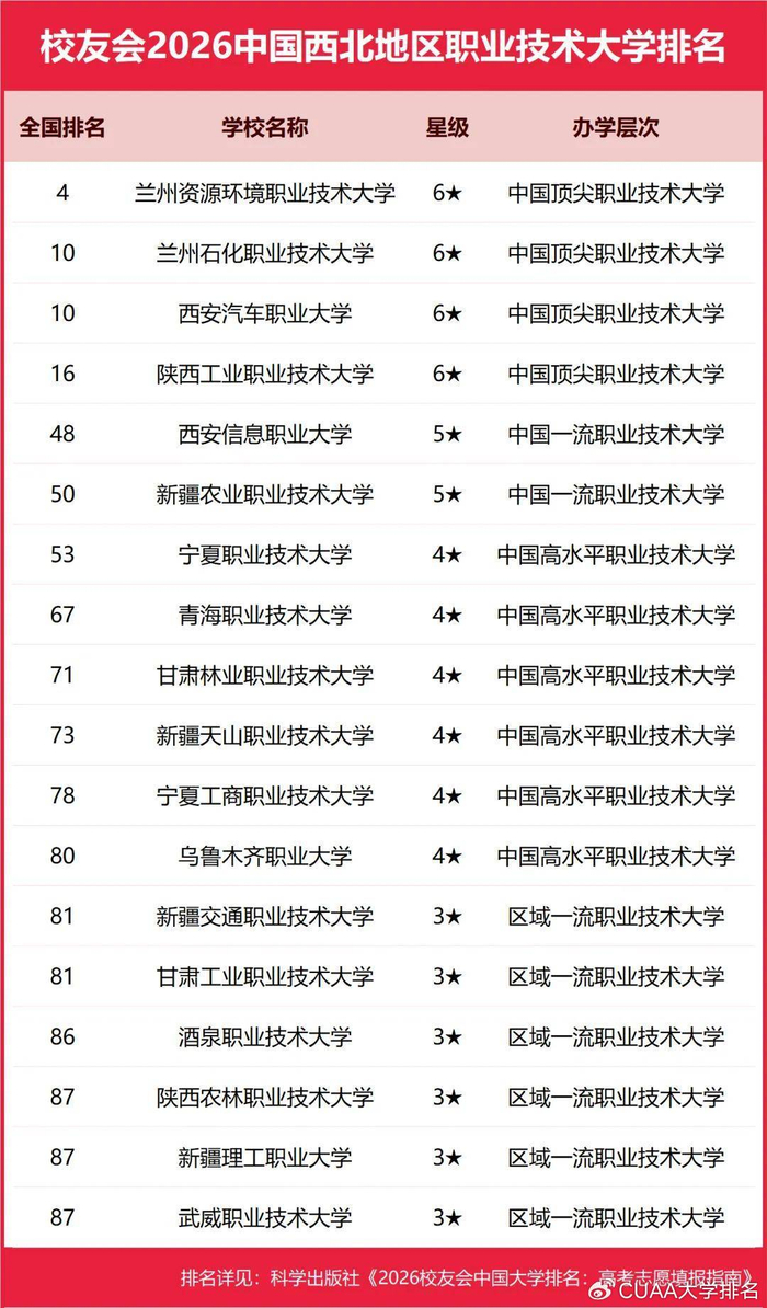 为了给2026年全国考生及家长提供志愿填报参考指南,1月12日,全国第三方大学评价研究机构艾瑞深校友会网(Cuaa.net)撰写完成、科学出版社即将公开出版的《2026校友会中国大学排名:高考志愿填报指南》最新发布校友会2026中国各区域大学排名、2026中国各区域民办大学排名、2026中国各区域职业技术大学排名和2026中国各区域高职院校排名。