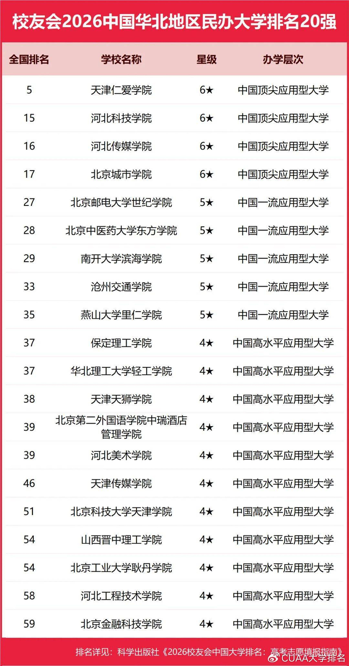 北京大学问鼎校友会2026中国华北地区大学排名首位
