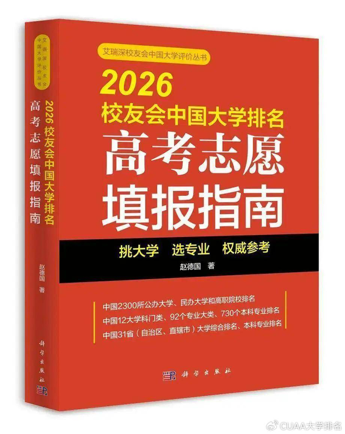科学出版社《2026校友会中国大学排名:高考志愿填报指南》