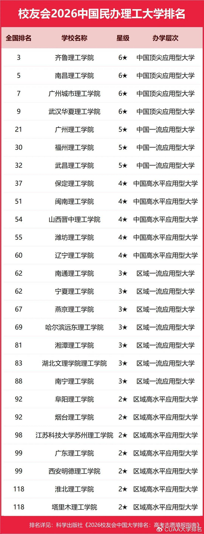 齐鲁理工学院问鼎2026中国民办理工大学排名第一,武汉华夏理工学院跻身前4强