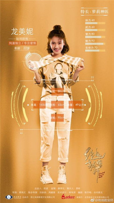 据陆琦蔚透露,她在《绝地勘宝师》一剧中饰演的是“萝莉小神医”龙美妮。“这个角色不仅性格活泼可爱讨人喜欢,而且深藏不露,是一个医术不是一般6的美女小神医。她虽然年轻,但却是一个很有责任心,总为别人着想的女孩。在团队中,她总是常会主动去照顾大家,同时竭尽所能地帮助别人。她的善良和单纯是很打动我的,所以能塑造这样一个角色,我感觉很幸福。”
