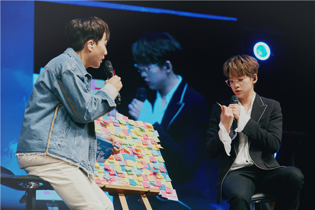 在被粉丝们写下的问题贴得密密麻麻的便利贴板上,充满了大家对余景天的好奇。选择了数十个问题并一一给出了机智有梗的回答的余景天,既把在场粉丝逗得开怀大笑,又进一步加深了粉丝们对他的了解,现场气氛十分愉快热烈。然而余景天并没有让粉丝们的尖叫声有片刻停下,在粉丝的惊呼声中见面会迎来了新的高潮。余景天表演了其在《Produce X 101》比赛中的两段精彩片段《少年美》和《Monday To Sunday》,他在节目中正是凭借这两个舞台表现圈粉无数。表演一开始就引爆了全场粉丝的回忆,现场尖叫声掌声不断,粉丝们激动不已。