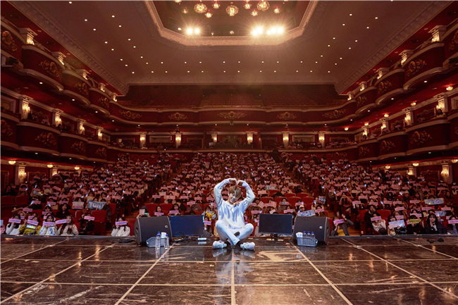 此次在韩国举行的见面会,是余景天首次与粉丝见面互动,也是余景天自节目结束后的首次舞台亮相,粉丝们可谓是期待已久。见面会开始,余景天自弹自唱了一首中文歌曲,这也是余景天第一次在舞台上表演弹唱,其深情的演绎,流畅的弹奏,把粉丝带入到了这个魅力男孩的世界。之后,余景天与粉丝们一起回顾了他过去17年的人生经历,现场公开了很多他个人从小到大的照片,并分享了每张照片背后的许多有趣故事。余景天表示,从小就非常喜欢站在舞台上的感觉,能够让更多人看到他,喜欢他,一直是他的梦想。