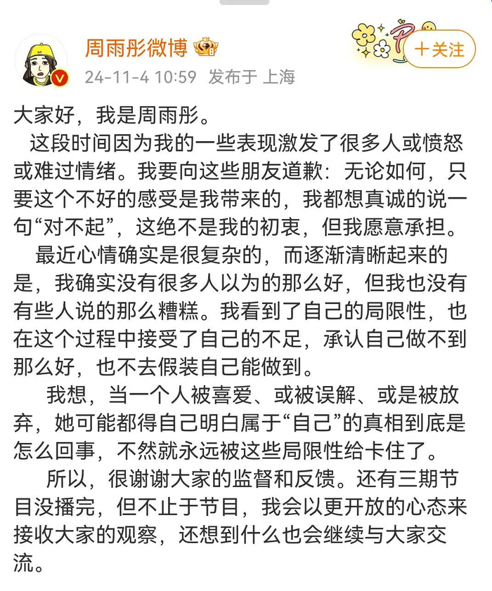 这会让一些有相似感受的观众看到节目之后立马共情,也许后续有新的澄清,但当时的炮火也确确实实集中在了周雨彤身上。
