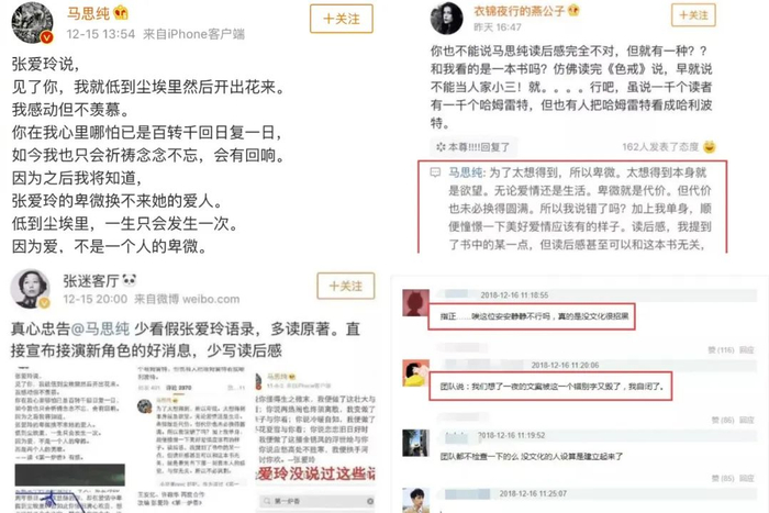 同样境遇的,还有马思纯主演的《第一炉香》。起初,马思纯在微博上用“青春疼痛式文学"解读葛薇龙的情感,将其称为“爱不是一个人的卑微”,被网友批评消解了原著中的悲剧色彩。在宣传期间,官方抖音侧继续沿用“青春疼痛文学"风格的宣传思路,制作了一系列”爱而不得“类型的切片,被网友评为“潮的风湿”。