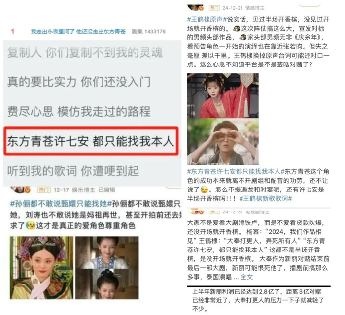 《大奉打更人》播出前,“许七安”这一尚未面世的角色已经在王鹤棣的rap中与“东方青苍”平起平坐,成为演绎生涯的代表角色之一。而后的定档盛典,再一次吊足了观众的胃口,但随着剧集的播放,口碑产生翻转,前期的种种也被网友评为“半场开香槟”,剧集也被称为互联网新一届“耀祖”。