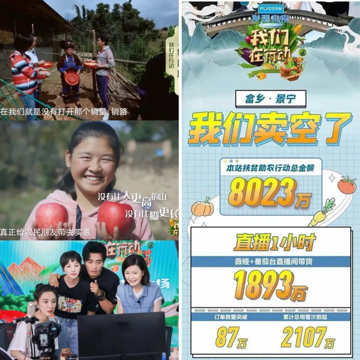 《我们在行动》通过明星下乡选品、产品研发、订货会推广、社区推广等方式,帮助贫困县区走上致富道路,仅山西省临汾市隰县一站便获得了1.7亿元的助农销售额,切实带动地域经济发展,助力脱贫致富。