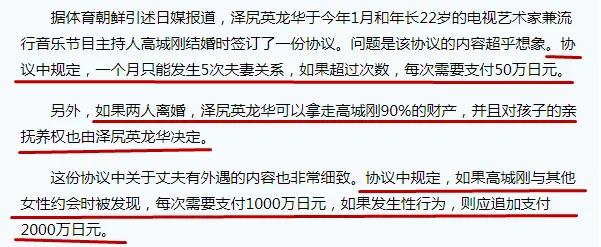 你要说美女完全不知道老公丑么?她还真知道。泽尻英龙华规定每月只能同房5次,如果超出对方就必须支付50万日元。