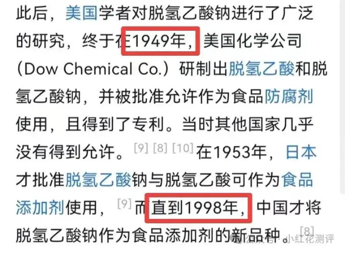 1949年!比起我们1998年才批准使用,米国人足足比我们多吃了近50年的脱氢乙酸!
