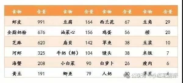 这是日常食物中的钙含量。大致按照饮食习惯计算一下,就知道每天正常饮食已经摄入了多少钙,做个减法,就知道该不该补钙,该补多少了。