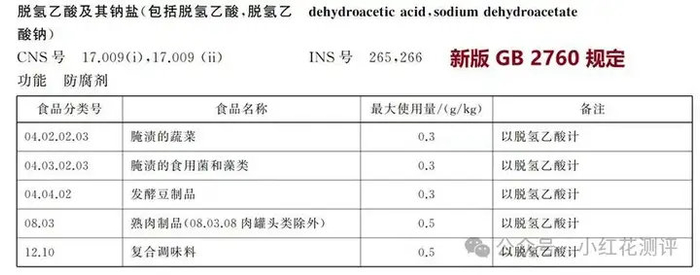 3、2025年2月8号起脱氢乙酸将被新国标大范围禁用。