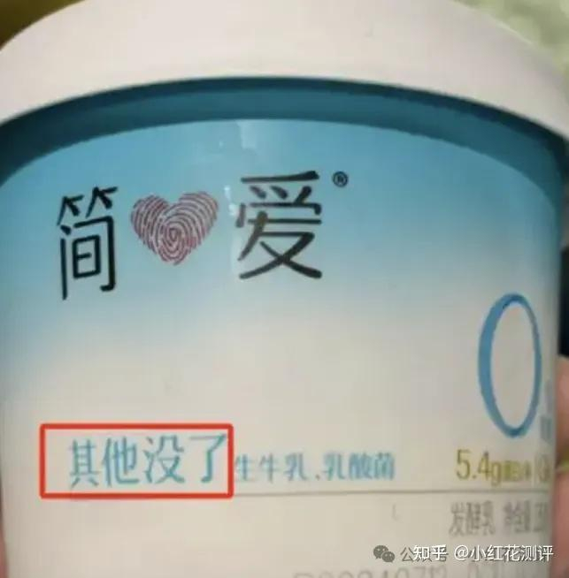 有的聪明一点,不用「0添加」,但用类似的字眼代替,比如简爱酸奶包装上印着的,象征配料表干净的「其他没了」也是商标……
