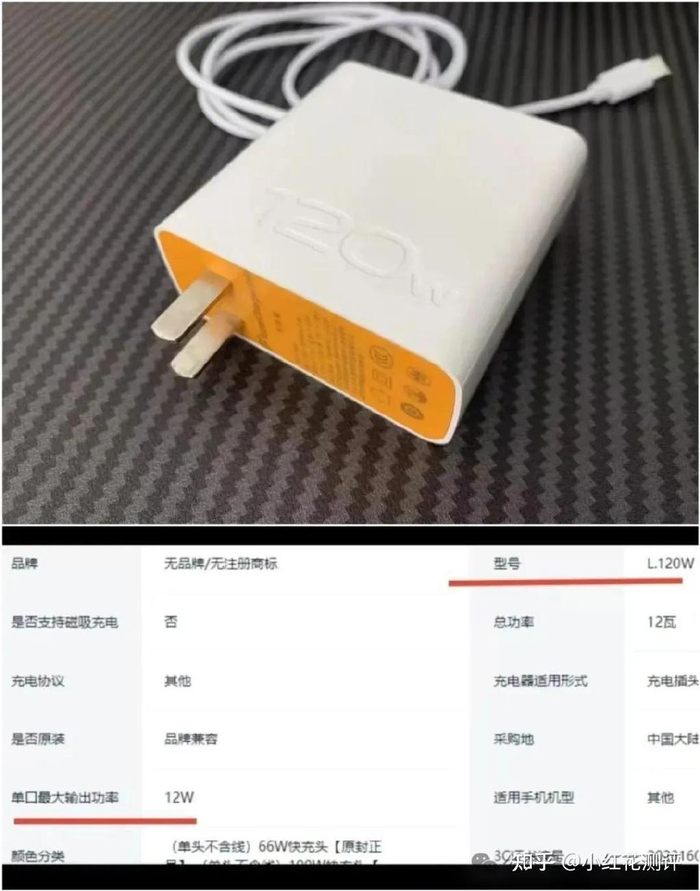 以120w作为图片商标的充电器,实际功率只有12w;