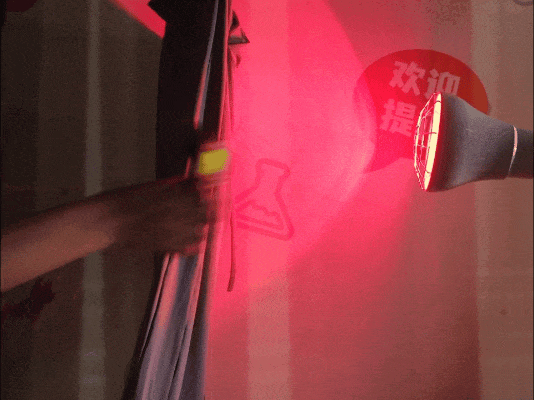 防晒衣与可以发热的红外照灯之间间隔20cm,打开红外灯,用温度计测量20cm处服装表面的温度、服装背面的温度,看看热量经过两层面料之后,会被屏蔽掉多少;隔热好的衣服,背面温度会更低。