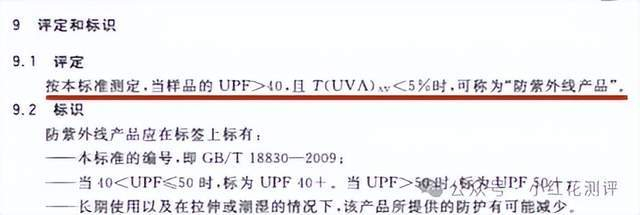 按照国家标准GB/T 18830-2009,紫外线防护指数(UPF)>40,也就是紫外线屏蔽>97.5%,而且UVA透过率时,才能称为「防紫外线产品」。