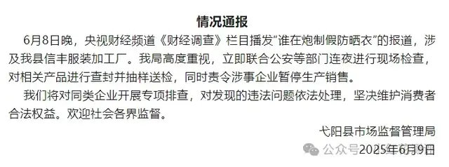据央视新闻6月8日报道,央视新闻记者冒充采购商,摸底调查防晒衣工厂和布料市场,发现