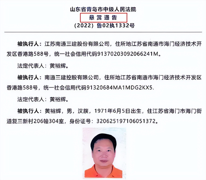 谁也没想到,7年后的今天,黄裕辉等来的不是一家营收千亿的企业,而是一张价值2500万的悬赏令——只要有人能提供他隐匿财产的线索,最高就可获得2500万元的奖励。