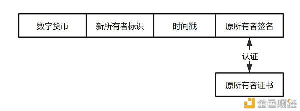 数字货币的结构中,所有者标识指的是用户的钱包证书。当数字货币投放系统认可一个数字货币被一个钱包所拥有时,会利用自己的私钥对数字货币进行签名,进而生成一个新的数字货币。