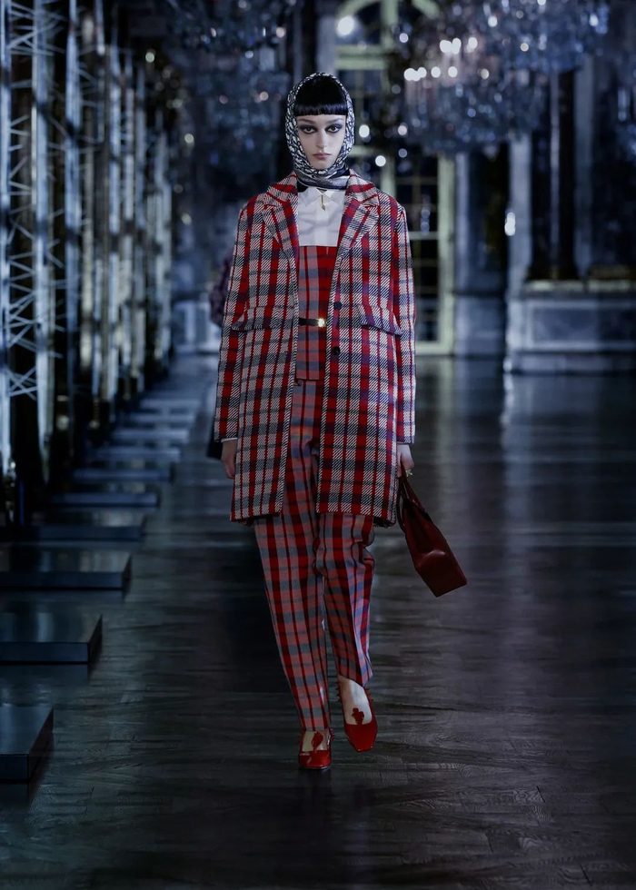 正如迪奥先生的《时装小辞典》(LITTLE DICTIONARY OF FASHION)中写道:“我觉得红色外套十分美丽”。此系列的红色调与小巧外套相得益彰,给饰有兜帽的斗篷和雨衣注入一抹醒目亮色。此外,红色古典玫瑰图案与格子呢的迷人搭配,还能令人联想起玛丽亚·嘉茜娅·蔻丽所钟爱的童话故事《美女与野兽》。