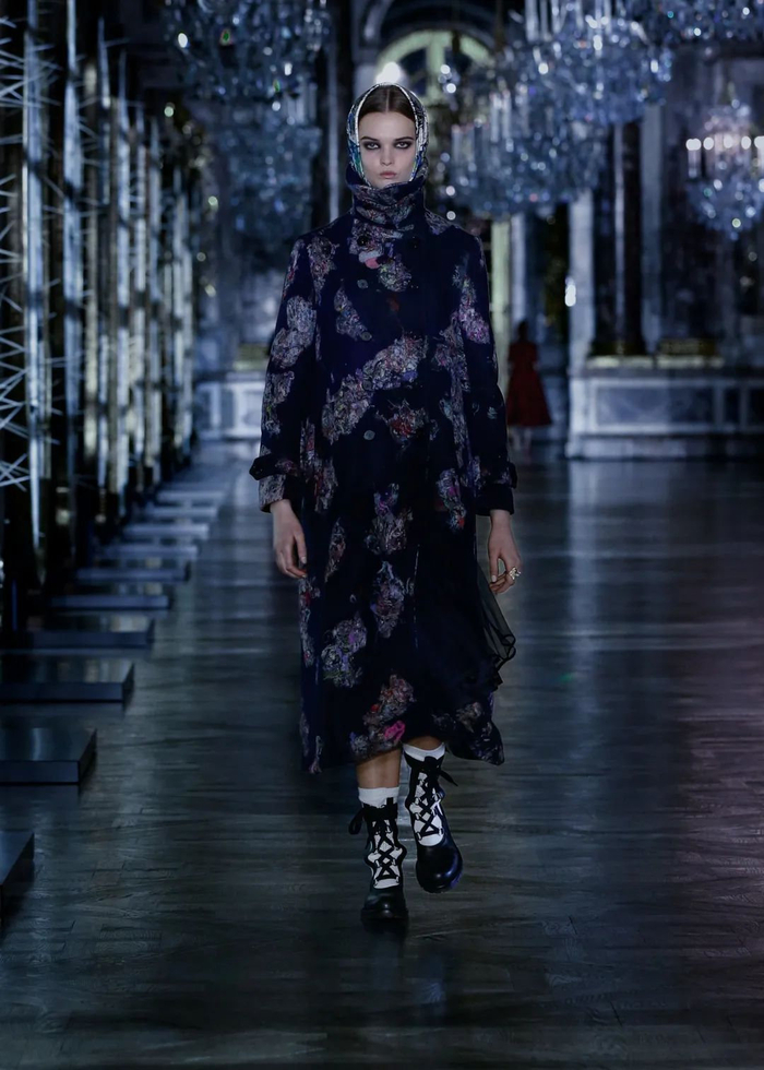 至于手袋,经典的Lady Dior手袋仍是本次大秀的主角,丝绒与皮质的丰富运用描绘出了本季浓重的复古情怀。