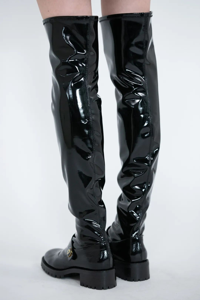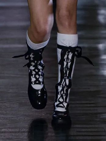 鞋履方面,绑带皮质长靴将童话中的浪漫和力量融合起来,多种靴筒长度能够演绎出更多元的女性角色。
