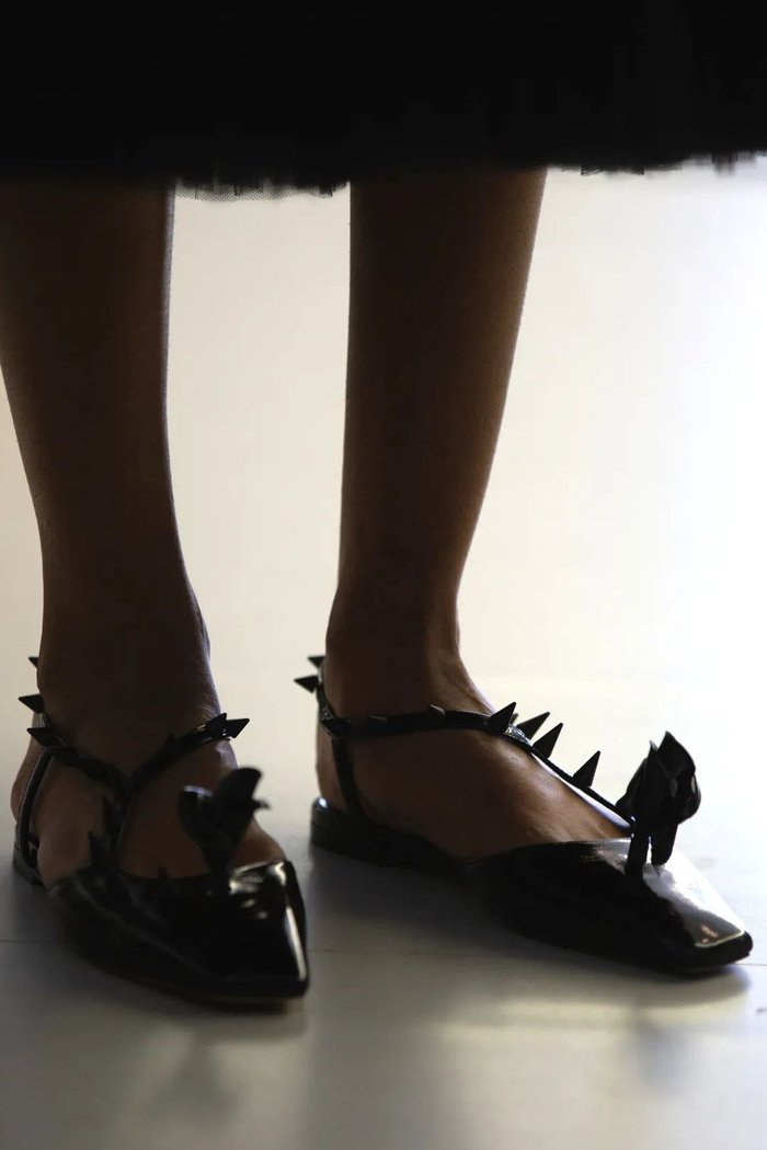 荆棘和玫瑰元素亦延续到平底鞋上,好似在倾诉女性强大、坚定的内心世界,她们有勇气“踏平”一切困难和阻碍。