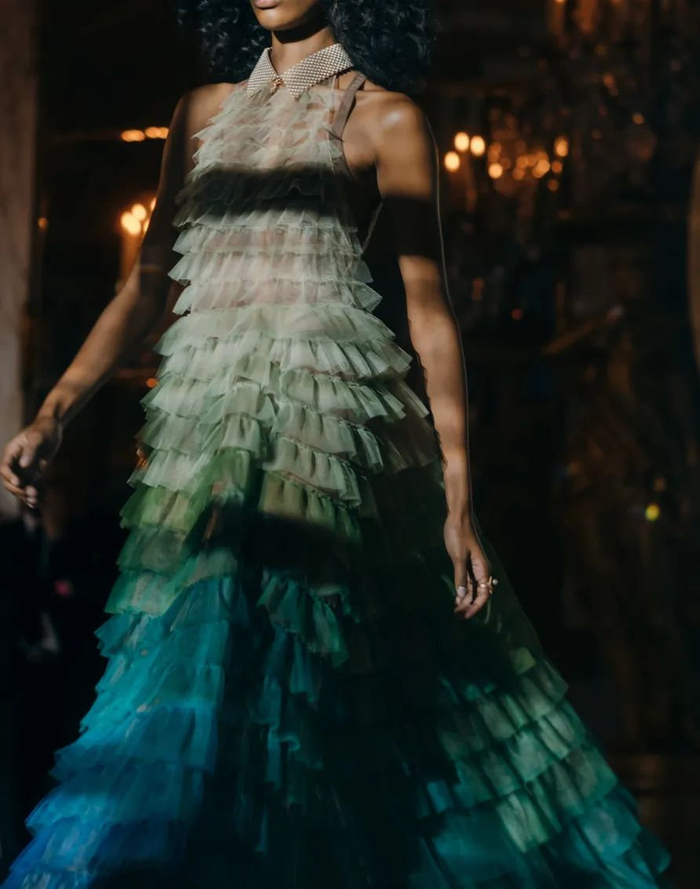 过渡到晚礼服,这也是迪奥女装系列最值得关注的部分之一。