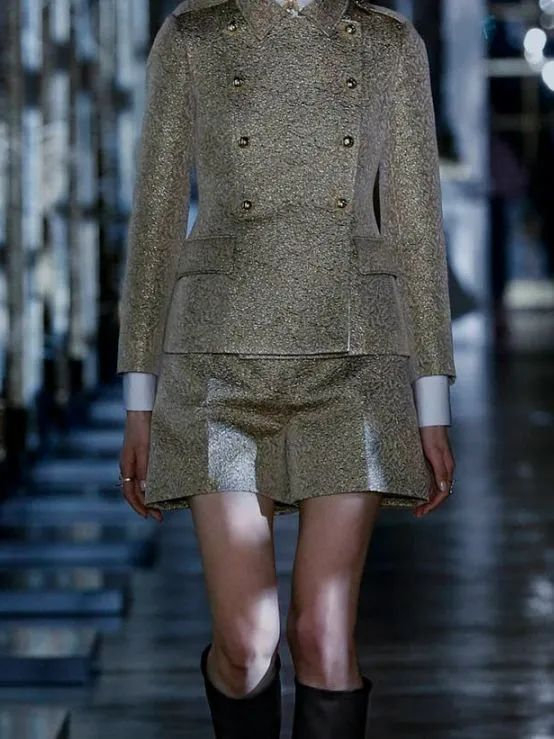 仔细看这些单品,你会发现本季大量使用了闪耀夺目的卢勒克斯提花,为时尚廓形注入金属光泽。金线和银线勾勒的迷人面料,仿佛在魔法的加持下轻盈悬空。