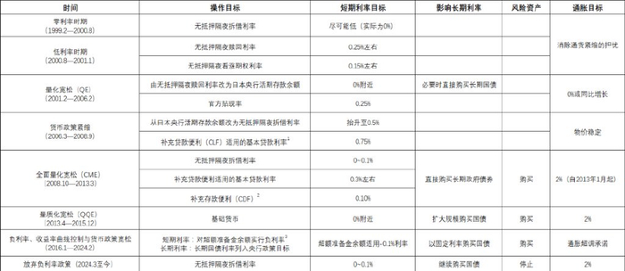 表1 日本央行货币政策操作目标及政策工具