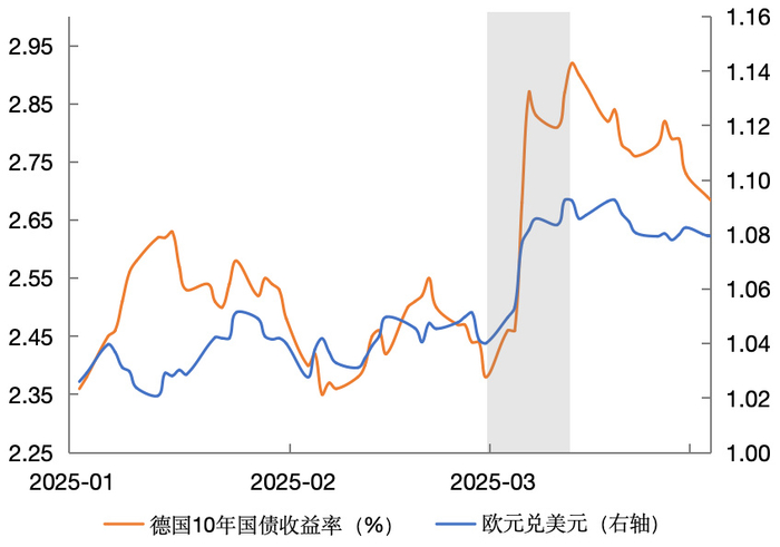 图2 2025年欧元和10年期德国国债收益率