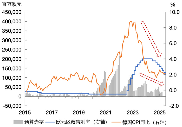 图4 德国赤字、政策利率和通胀