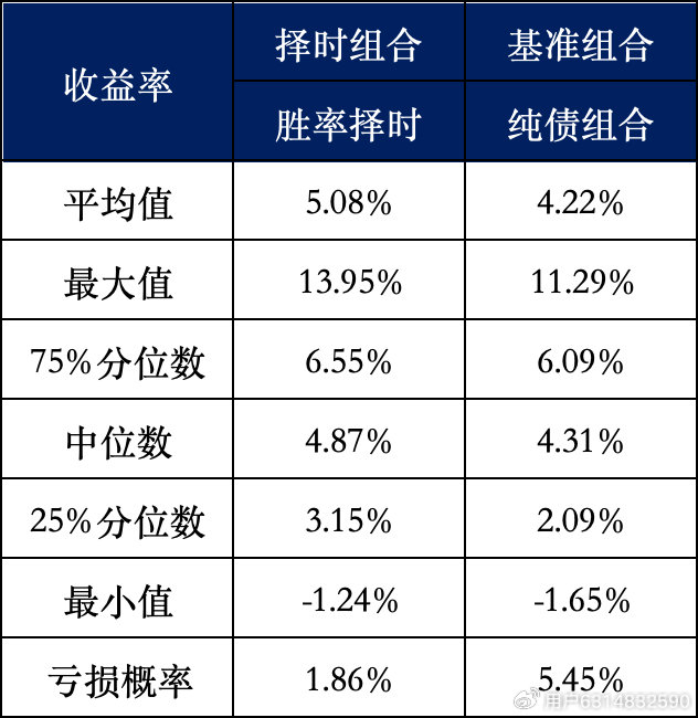 表2 持有择时组合和纯债组合1年能获得的收益分布