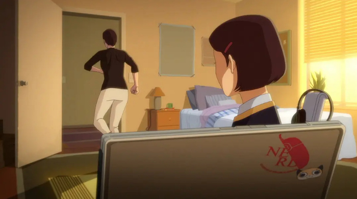 更不用提女主的笔记本上还贴着新世纪福音战士的NERV贴纸 👇