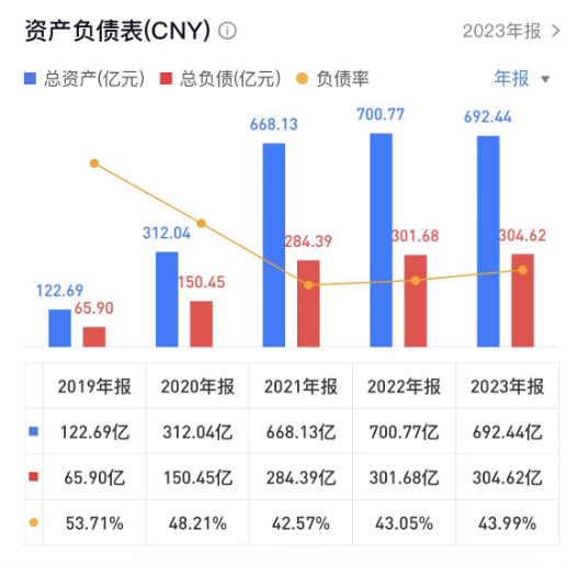 此外,2020年-2023年,碧桂园服务总负债分别为150.45亿元、284.39亿元、301.68亿元、304.62亿元。