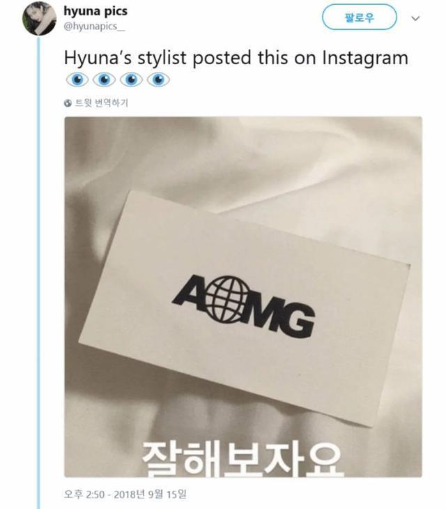 但是,今天泫雅的造型师最新发文“我们好好干吧”,配图是亮点。因为配了韩国公司AOMG的logo,很多人表示泫雅签约了AOMG?到底是泫雅自己进了AOMG还是和男友金钟铉一起呢?实在令人期待不已。