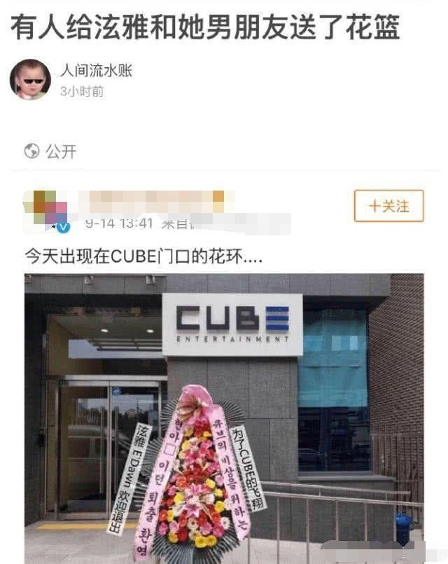 虽然韩国民众对于泫雅被辞退的消息表现的非常“理解”,但是仍然有极端的歌迷在宣布消息的第二天就送了“花环”到公司cube的大门口。上面写着:为了CUBE的飞翔,泫雅EDawn欢迎退出。