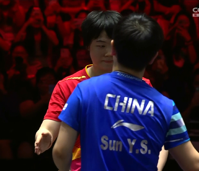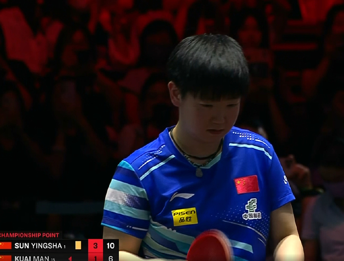 当你好不容易进入状态时候,顶级选手再变一次,你就追不回来了。一方面莎莎了解蒯曼,有战术针对性,一方面是比赛状态,另外一方面是通过节奏的控制,摁住了蒯曼的优势。她的优势就是旋转和比较黏的打法风格,喜欢借力打力,但她没有这个机会。