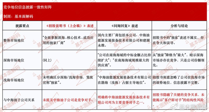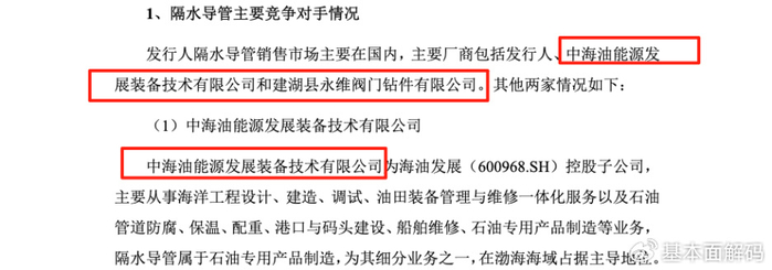 然而,这一核心论断在后续的问询回复中被其自身证伪。在监管机构的追问下,祺龙海洋承认国内隔水导管市场存在包括其在内的三家主要厂商,特别是明确指出“中海油能源发展装备技术有限祺龙海洋在渤海(浅海)占据主导地位”,而祺龙海洋仅是“中海油南海(深海)规模最大的供应商”。从“独家厂商”到“最大供应商”,这并非简单的语义澄清,而是对祺龙海洋市场地位的根本性修正,其性质已构成重大误导性陈述。