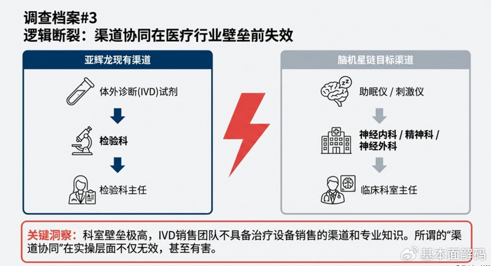 逻辑断裂:医疗行业的科室壁垒极高。检验科主任对神经内科的设备采购没有决策权。亚辉龙的销售代表不仅不认识神经科医生,也不具备销售治疗性设备的专业知识(IVD销售与治疗设备销售的技能树完全不同)。