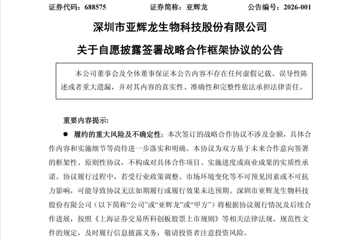 深圳市亚辉龙生物科技股份有限公司(以下简称“亚辉龙”)于2026年1月6日及7日公告《关于自愿披露签署战略合作框架协议的公告》、《关于自愿披露签署战略合作框架协议的补充公告》以及《关于收到上海证券交易所问询函的公告》。基本面研究员对亚辉龙与深圳脑机星链科技有限公司(以下简称“脑机星链”)的合作事项进行“穿透式”分析。