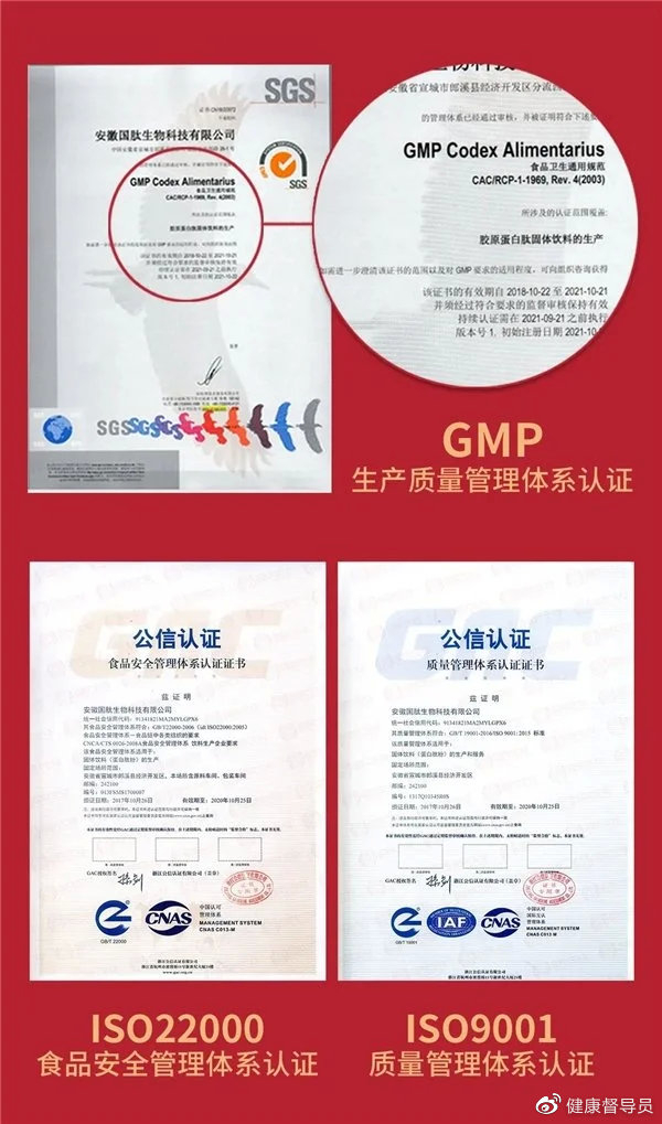 民以食为天,食以安为先。一直以来,在食品安全问题上,人民国肽集团始终保持着“零容忍”的态度,严格把控生产质量关,从原料验收、生产过程到成品包装进行全流程品控管理。同时,国肽还先后通过了 GMP生产质量管理体系认证、ISO9001质量管理体系认证、ISO22000食品安全管理体系认证等多项国际权威认证,并通过了中国检科院、谱尼测试、国家兴奋剂检测中心的产品检验检测,全方位保障消费者“舌尖上的安全”。