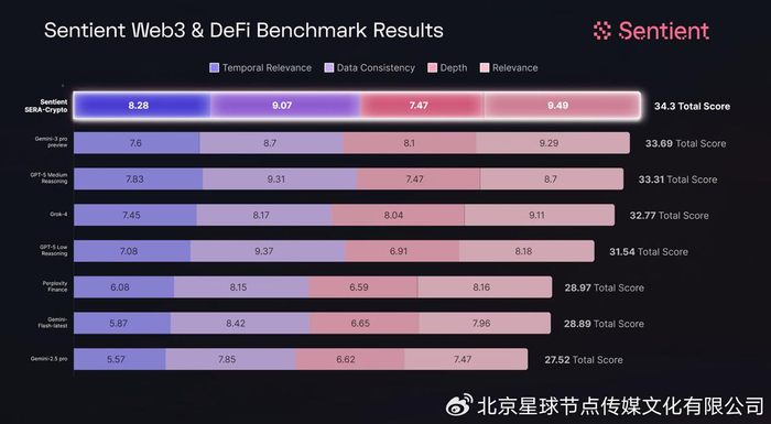 SERA CryptoSERA Crypto 以 34.3 分的成绩排名第一,整体表现甚至优于 GPT-5、Grok 4、Gemini 3 Pro 和 Perplexity Finance 等主流 AI 模型,且所有操作在 45 秒内完成。