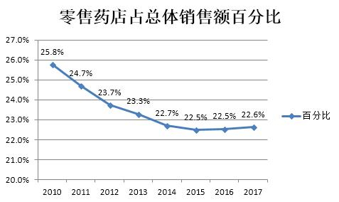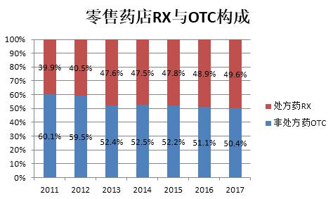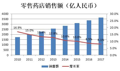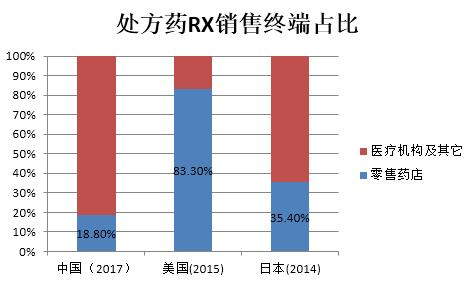 3)药品销售额比例中以处方药占8成,而国内处方药销售以医院等医疗机构渠道为主,零售药店渠道占比较低。随着医药分开实行,处方药市场未来有望开放,其中蕴含巨大的机遇。