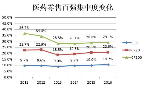 同时,全国药品流通行业发展规划(2016—2020 年)》提出 2020年目标——药品批发百强企业年销售额占药品批发市场总额 90%以上;药品零售百强企业年销售额占药品零售市场总额 40%以上;药品零售连锁率达 50%以上。 目前现状离目标还有差距。