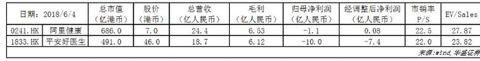 特别需要注意的是,在2018年3月,在民营体检市场占有重要份额的医疗服务公司爱康国宾,接受云峰和阿里巴巴的私有化建议,以每股A类或C类普通股41.20美元或每股ADS股票20.60美元的价格进行私有化。后续爱康国宾存在与阿里健康进行更紧密合作的可能性,直接参与到阿里健康的产业链中。爱康国宾2017财年前三财季盈利5014.4万美元同比增长127.69%;营业收入4.74亿美元,同比增长26.32%,拥有110间自营医疗中心。